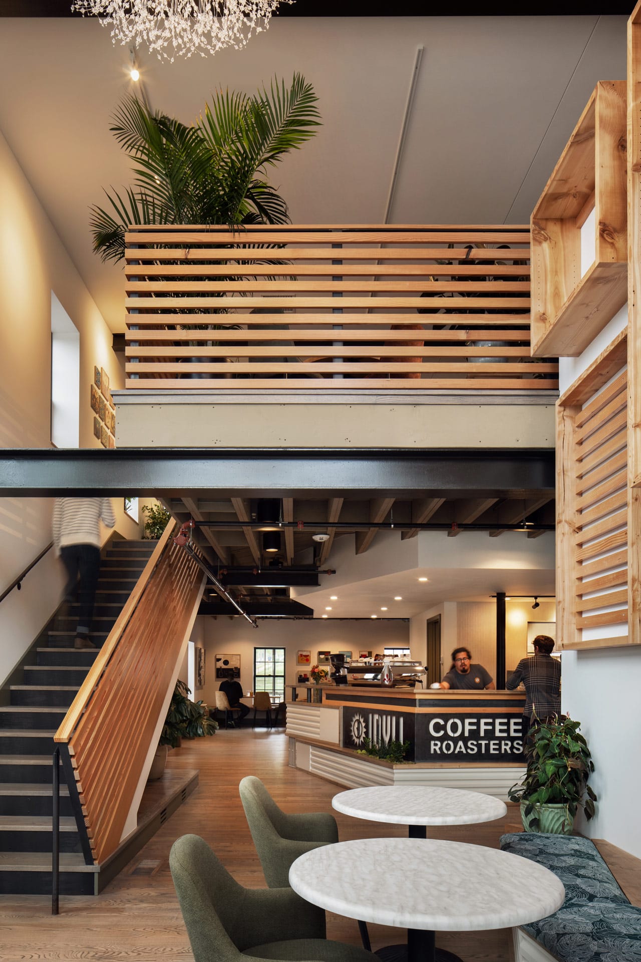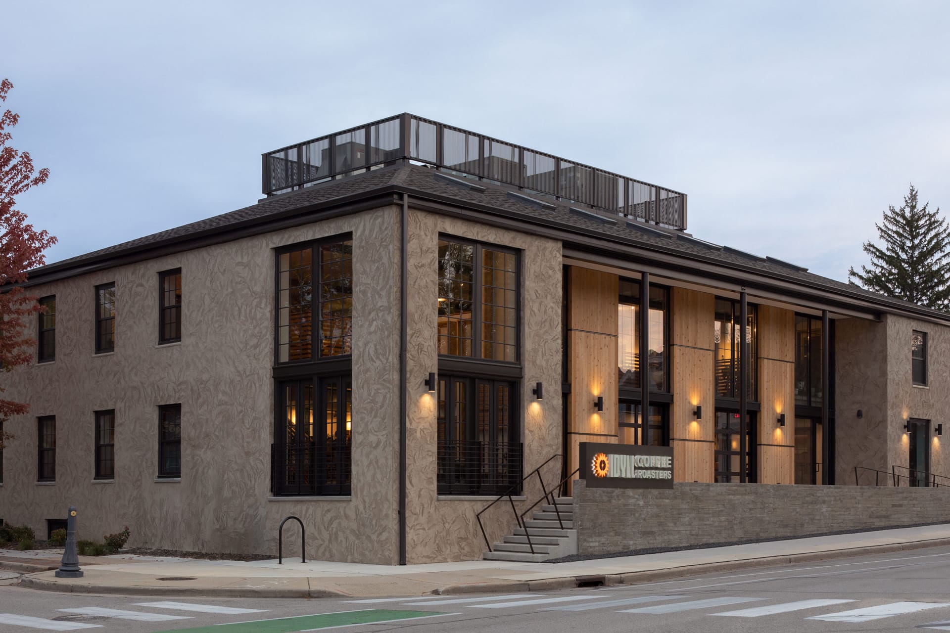 Idyll Coffee Roasters transformed a long-vacant two-story office building at 6330 W. North Avenue in East Tosa into a warm, light-filled café, roastery, and neighborhood gathering place. Once underused and overlooked, the 14,700-square-foot structure had seen multiple redevelopment proposals since 2018 before a successful plan emerged in 2023 to reinvent it as a community-focused coffee destination driven by four local partners with deep ties to the area. Galbraith Carnahan Architects led the renovation, preserving the original building while reshaping its façade and interior to bring natural light deep into the space and create a welcoming presence on the street. The design supports a full roasting operation alongside café seating, lounge areas, and flexible gathering zones where neighbors can connect over specialty coffee sourced ethically and roasted on-site. The result is a project that not only repurposes an existing building with layered textures, greenery, and a modern yet inviting atmosphere but also adds a meaningful community hub to East Tosa’s steadily evolving North Avenue.