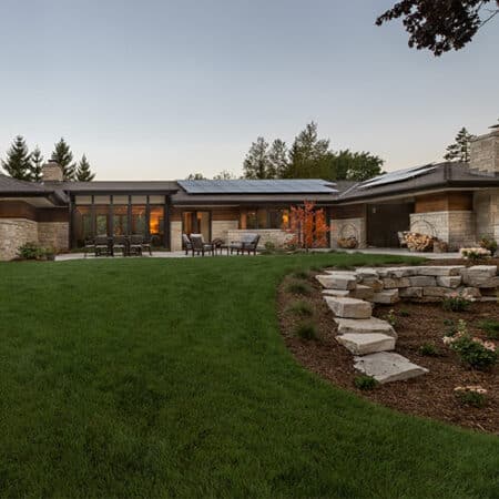 Situated in Sheboygan County, Wisconsin, Norwal Farm is a thoughtfully crafted retreat that embodies the aspirations of a newlywed couple seeking a peaceful, agrarian lifestyle. This distinctive residence, nestled below a scenic ridge, features expansive glazing that frames breathtaking views of the undulating landscape while strategically placed windows optimize daylighting and enhance the connection between indoor and outdoor spaces. The three-bedroom, 2½-bath home skillfully integrates contemporary design with natural materials, creating a warm and inviting atmosphere that supports both daily living and entertaining. Sustainable design principles are central to the project, with a polished concrete slab providing radiant floor heating and an adjacent solar field promoting energy independence. The residence's blend of form and function offers the perfect setting for the couple's vision of raising goats and sheep on their hobby farm. A defining feature is the B & B Room—an intimate loft space above the second floor, offering a cozy retreat for relaxation, complete with panoramic views that change with the seasons.