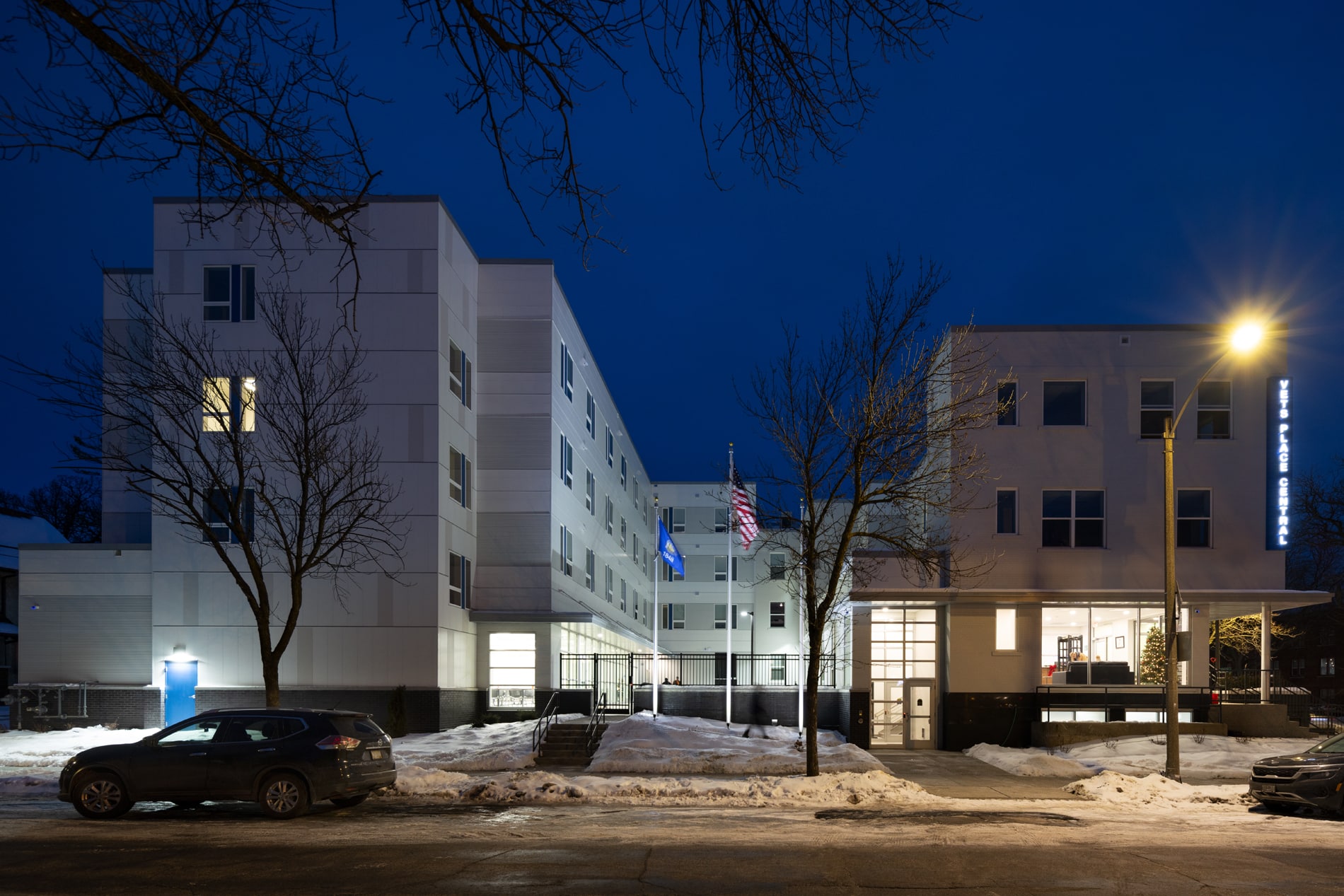 Completed in October 2025, the project includes a four-story addition and renovation of the existing building, transforming outdated dormitory-style housing into 81 single-room occupancy units with private bathrooms, including 68 transitional units and 13 permanent supportive housing units. Today, veterans live in the building and receive housing and services designed to support their transition toward stability and independence.